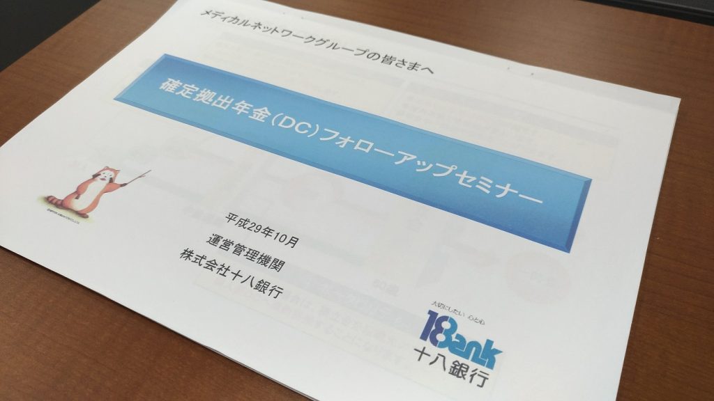 先日、十八銀行の方々に確定拠出年金説明会を開いていただき、営業統括部の柴田さんにお話しをお聞きしました。