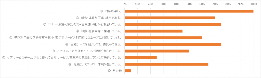 | ・ケアマネの層が厚く多様なケースの相談に応じてもらえる。 | |